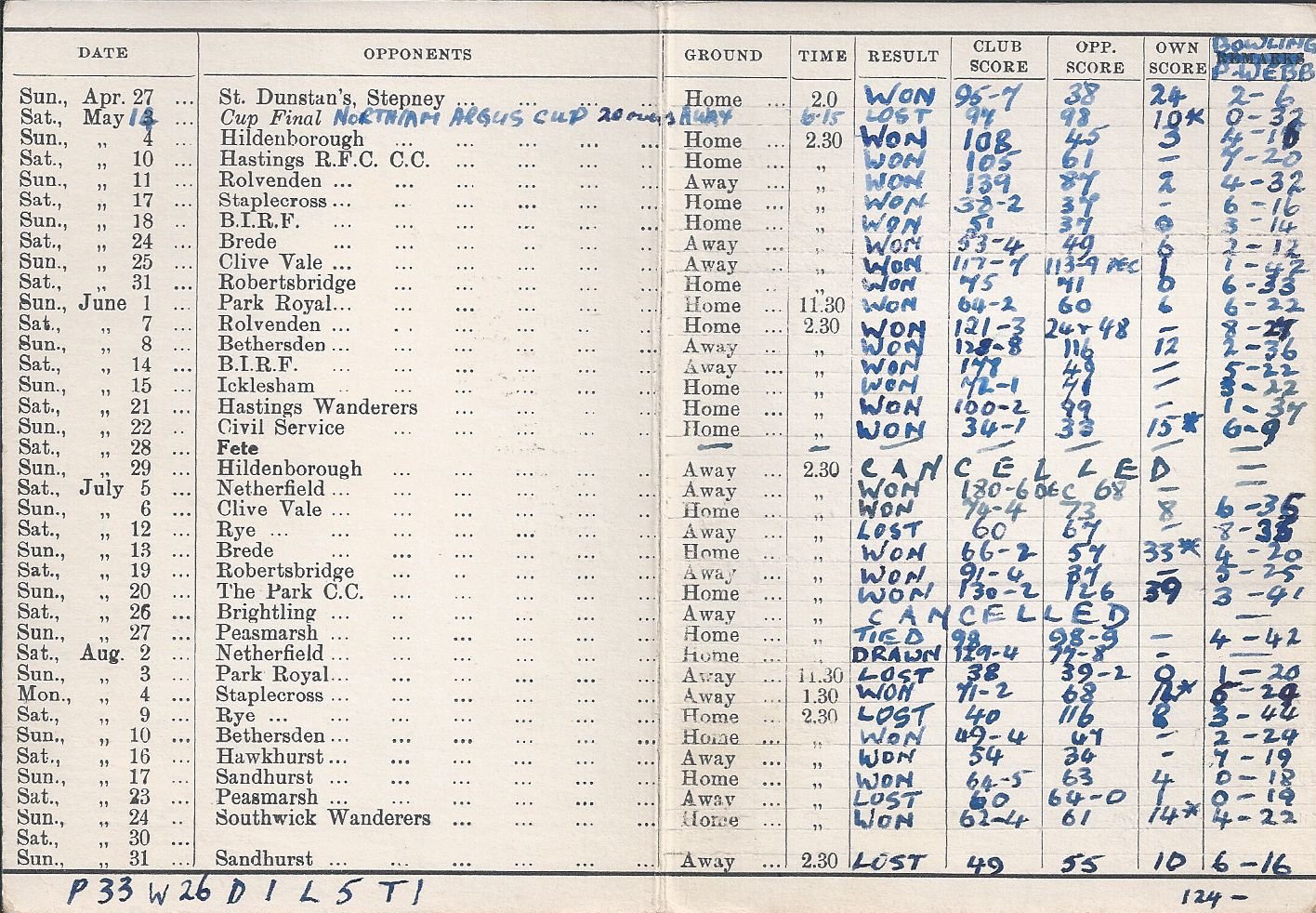 1958 Fixture Card