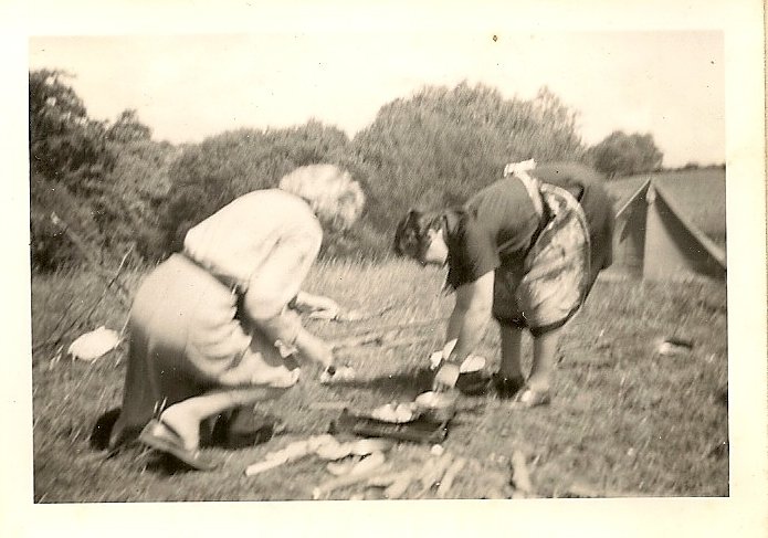 Akela and Rikki cooking dinner Cub Open Day 1957