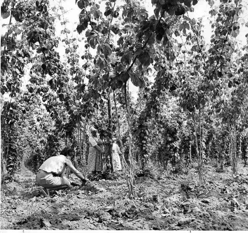 Hop training was a job done mainly by the local women (but not exclusively). Some men trained hops and the locals were augemented by "travellers" who turned up each year for the hop training.