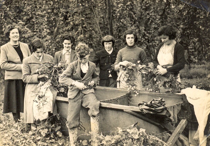 This photo shows a group picking at a bin which has been divided in to two half bins.