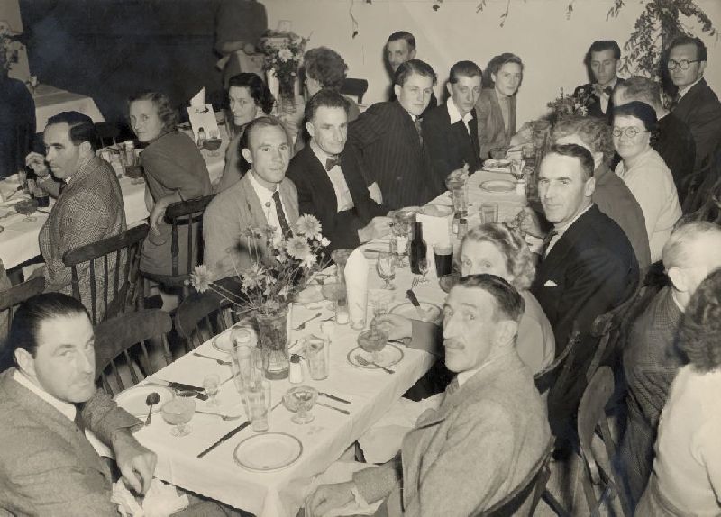 Front Table, Clockwise from bottom left: ?, Simon ?, Max Kenward, Lived at Terrace Wood, Frank Macey, Mary Macey, Tom Macey, Bill Sayers, Mr & Mrs Howard, George Watkins & Mrs Watkins, Bill Hall and Mrs Hall.